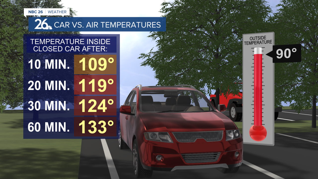 Meteorologist Brittney Merlot also helps us also understand how quickly the inside of a closed car heats up and how rapidly your dogs paws can burn on pavement... it's quite shocking!
