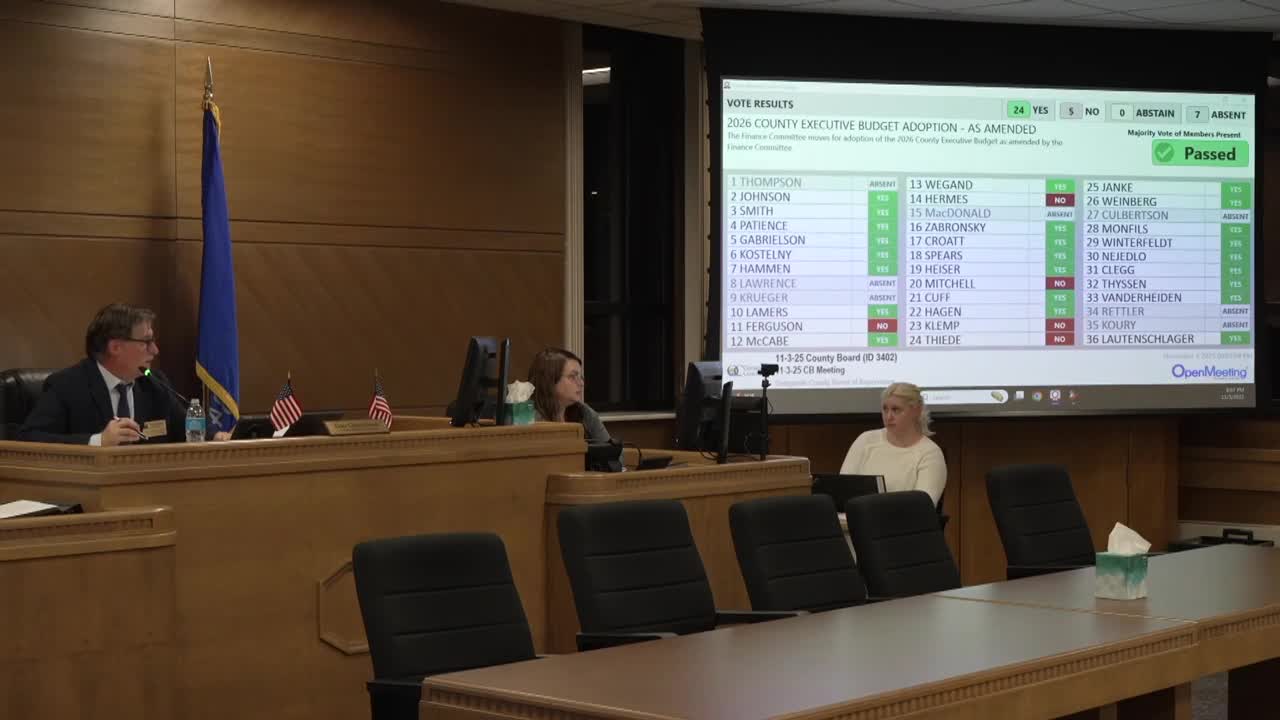 The county board voted Monday night to approve the budget, which allocates significant funding for community improvements across the region.