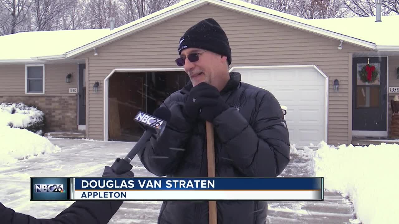 “It’s been heavy, wet snow,” said Douglas Van Straten of Appleton. “A little bit slippery; but it’s nice out.”