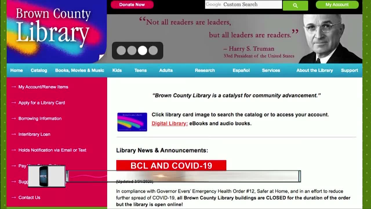 GREEN BAY (NBC 26) -- The Brown County Central Library is currently closed due to the coronavirus outbreak, but they're always open online and they have several resources available all for free with your library card.