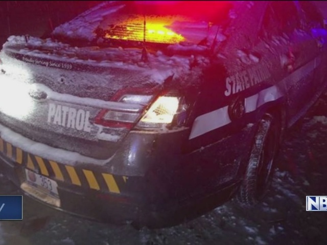 The post explains how the trooper’s squad was struck as he stood by the scene of another vehicle that spun out and was stuck in the median.