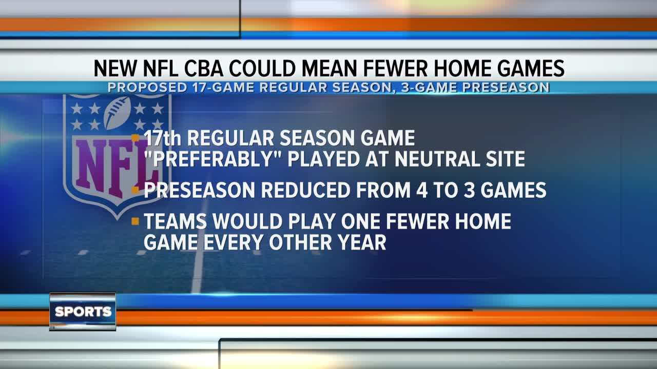 — A 17-game schedule, which always has been a stumbling block in talks with the NFL Players Association. More roster spots per team would be a must for the players.