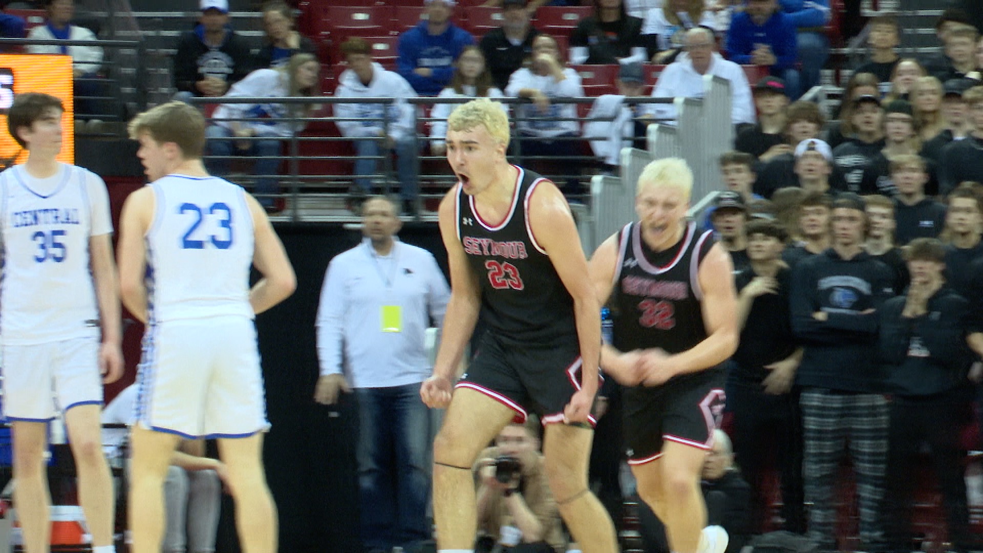 Seymour coach Bobby Kuchta credited his players’ balance and preparation. “We try to play through these two guys, and if they get doubled, they’re willing passers,” Kuchta said. “We just executed in the second half, and that was the big difference.”