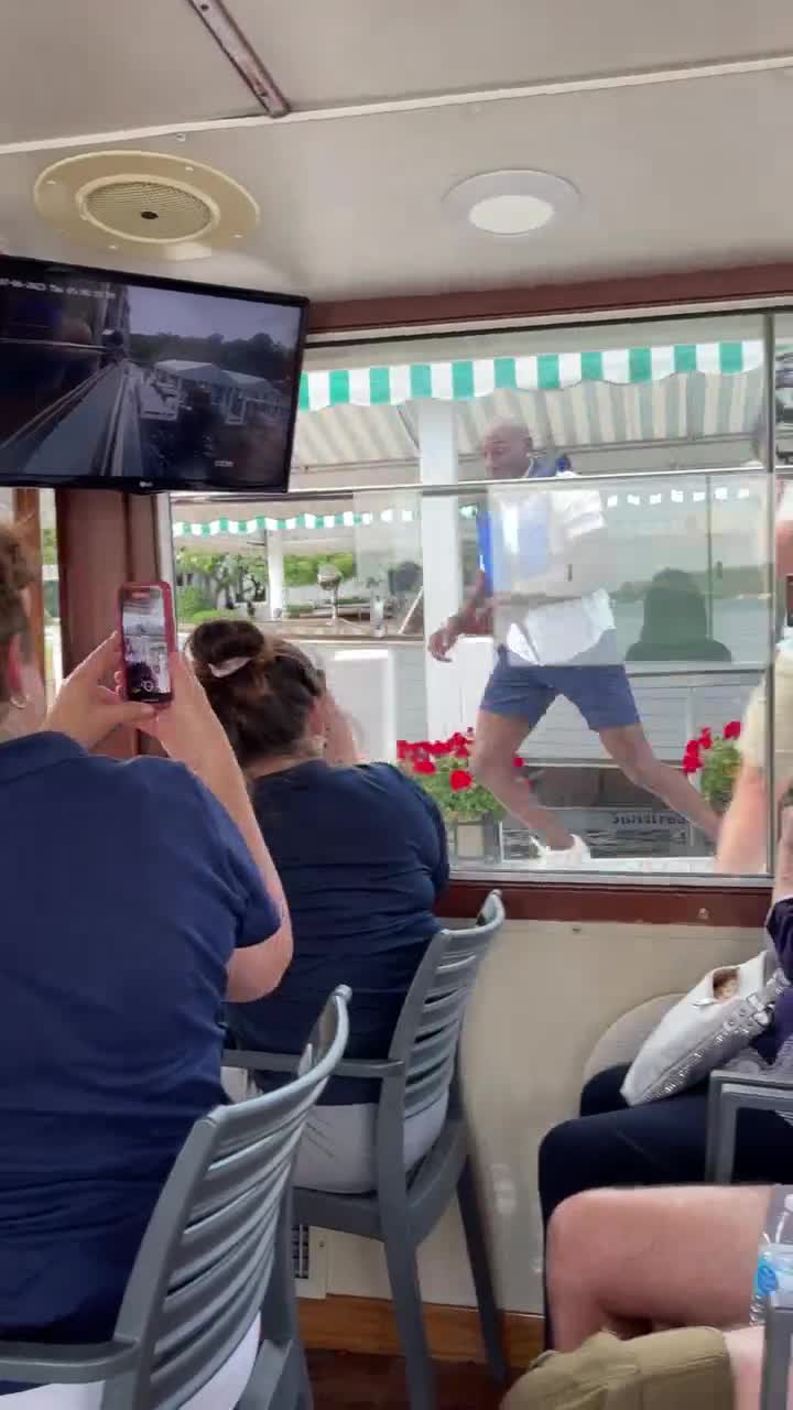 It's a difficult task, but Driver gave it his best shot. In the videos provided by Visit Lake Geneva, Driver is seen successfully delivering the mail and getting back on the boat, but in one attempt, he falls to the floor of the boat when getting back on board.