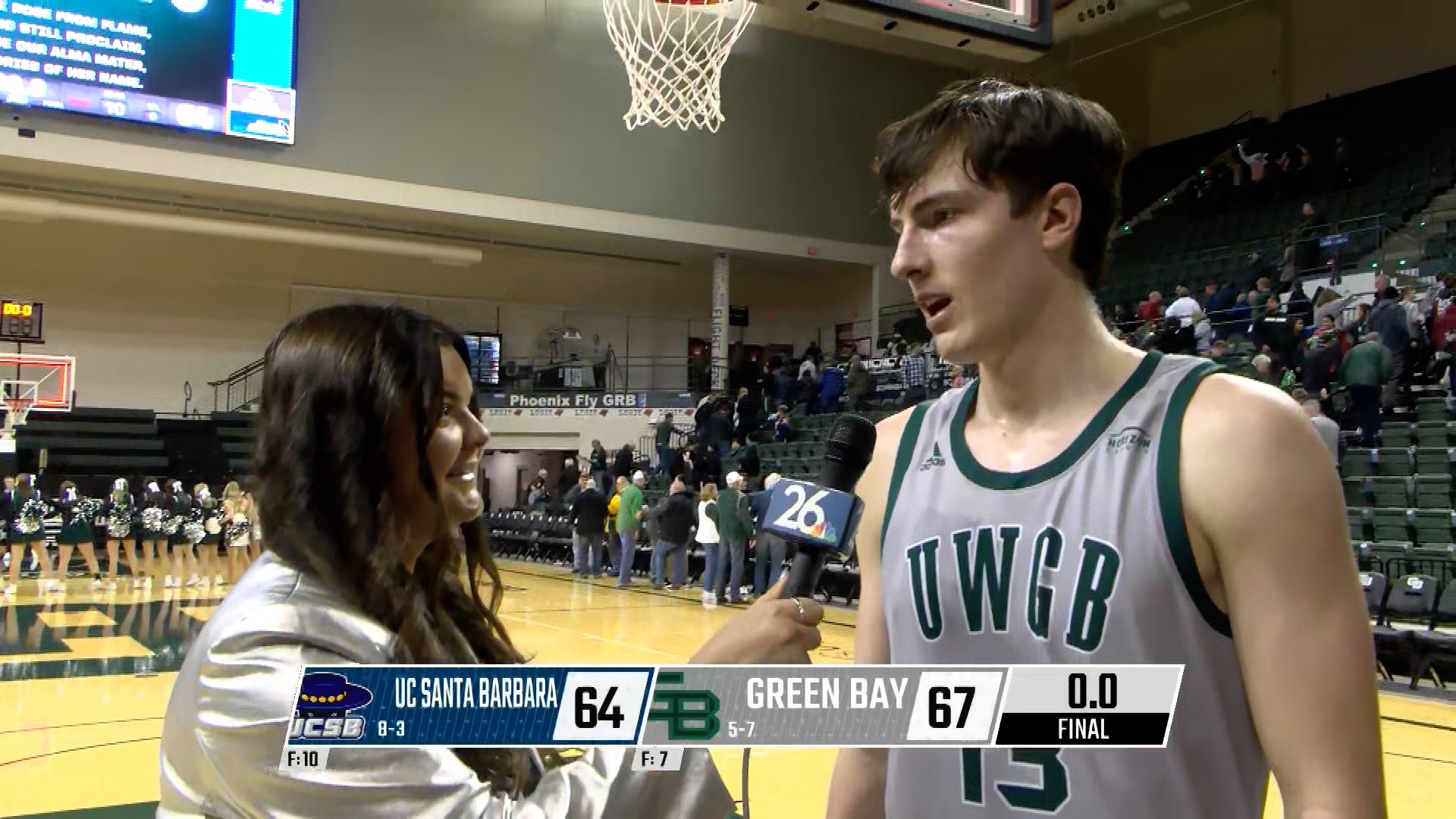 GREEN BAY (NBC 26) — The Green Bay men’s basketball team relied on a sharp performance from long range to secure a 67–64 victory over UC Santa Barbara on Wednesday night at the Kress Center. The Phoenix connected on 52.4 percent of their shots from three-point range, playing a key role in the close win.