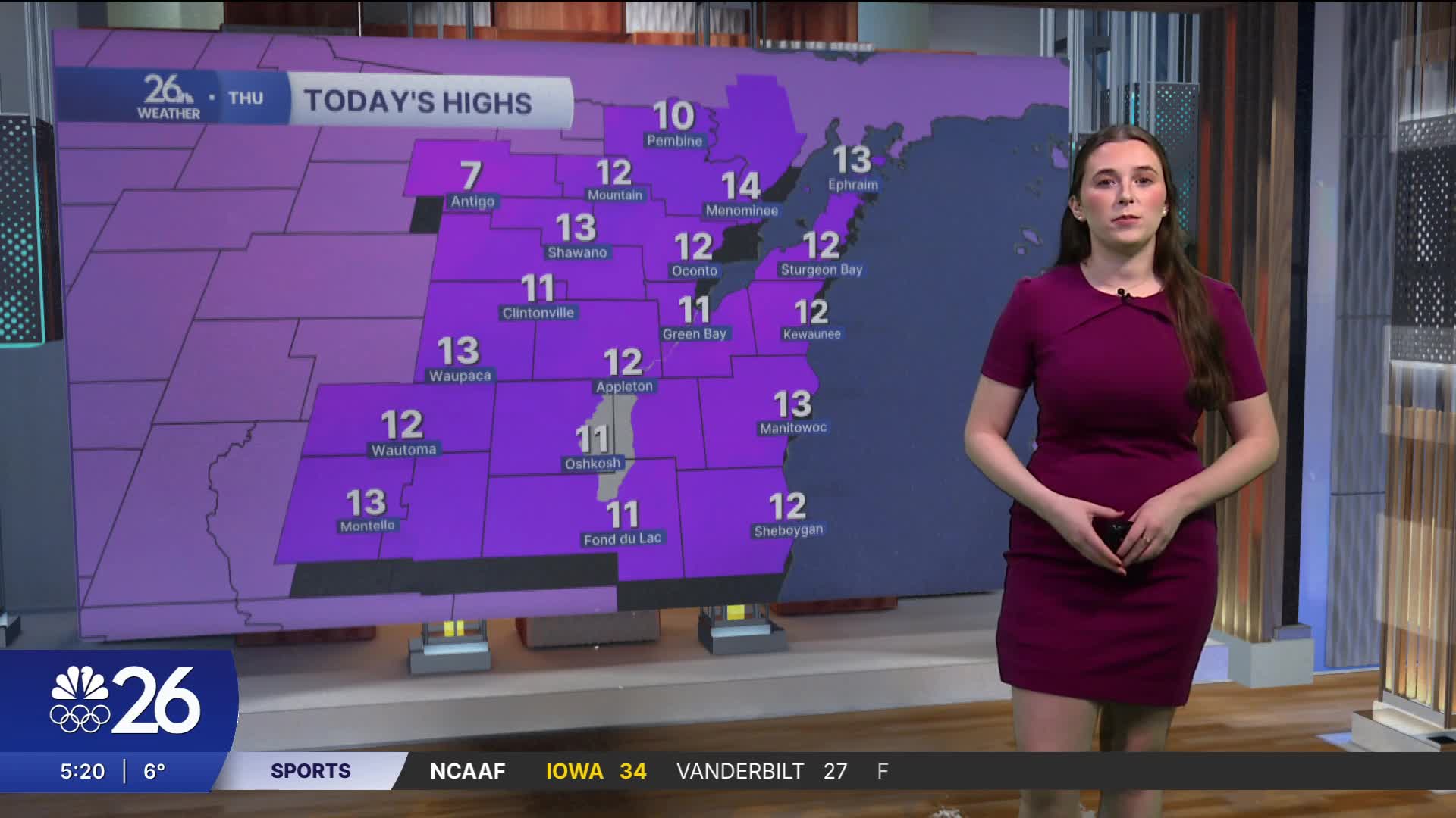 Morning temperatures are starting out in the single digits, and despite some afternoon warming, highs today will only reach the low teens. A light breeze will keep wind chills at or below zero throughout the day, making it feel even colder than the thermometer suggests.