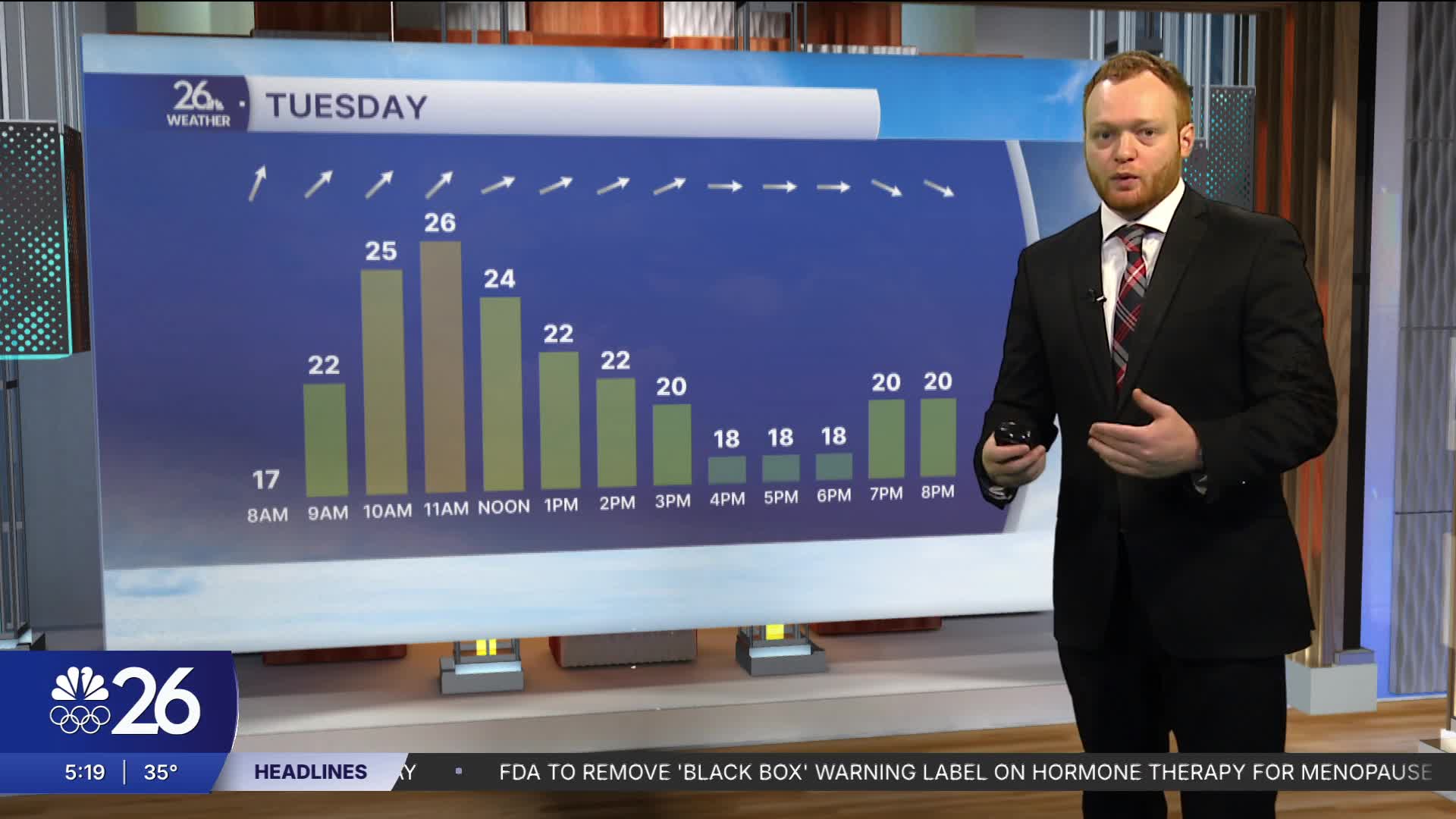 Tuesday will once again be windy with highs once again below normal in the low 40s.