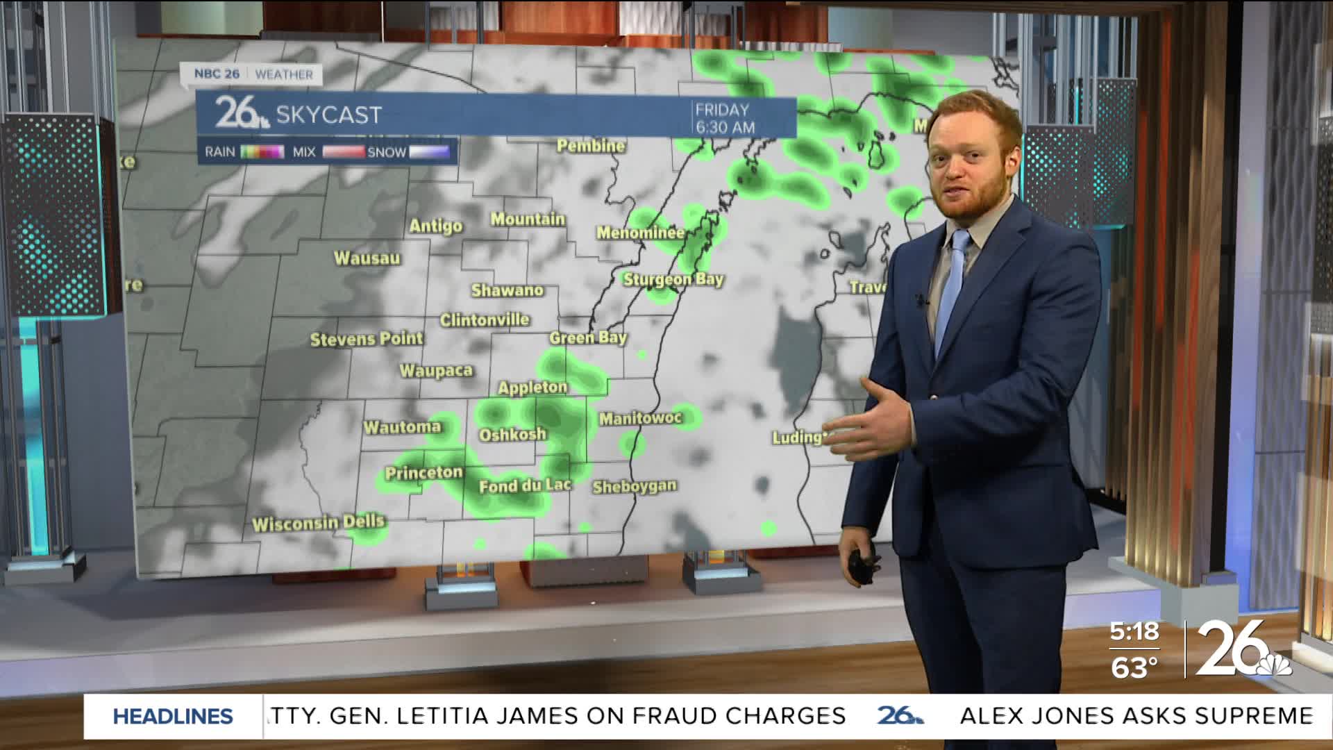More clouds move into the area overnight with early morning showers expected Friday morning.