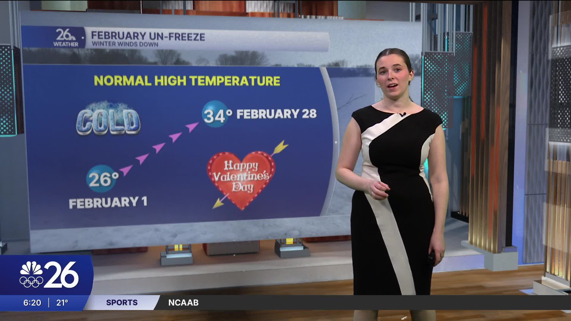 Tonight, skies continue to clear and temperatures drop into the single digits. Tuesday will be sunny and seasonable, with highs in the low-20s. Overall, temperatures this week will stay close to average for early February. Our next chance for snow arrives on Thursday