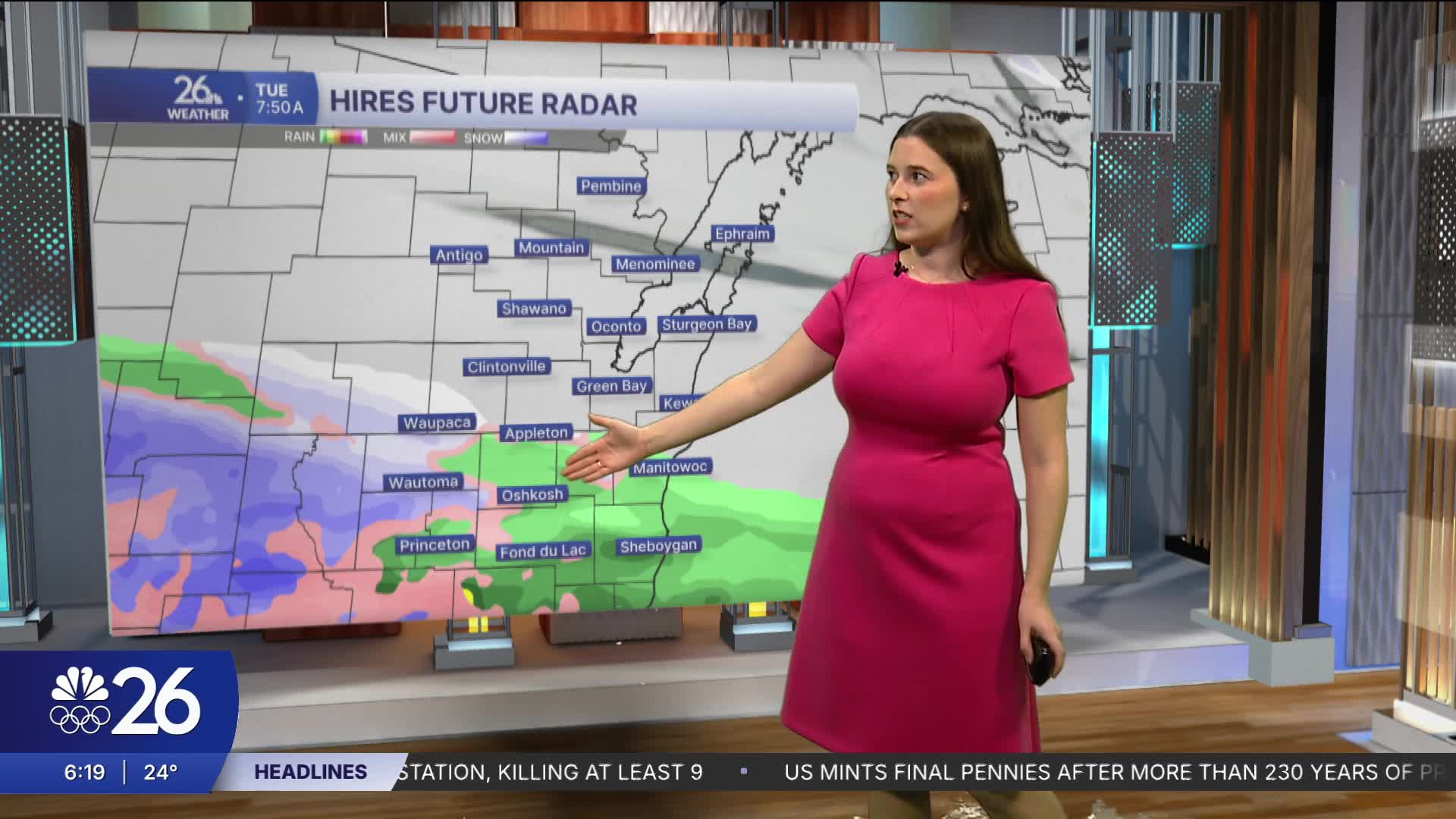 Clouds begin to move in later today, giving us a cloudy night with lows in the mid-20s. Early Tuesday, our next system brings a rain–snow mix. The steadier snow will stay mainly south of Appleton. Some wet, slushy accumulation is possible in those areas, enough to make a few roads slick for the morning commute.
