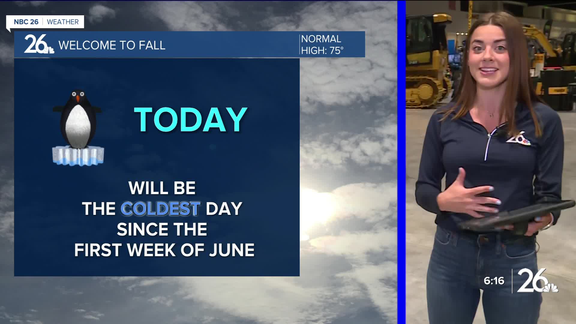 We are in for a rude awakening today. Our temperatures will be 10 degrees below normal, only in the low 60s! Northerly winds gusting to 20 mph, lots of clouds and some rain showers are likely too. This will be the coldest day since early June!