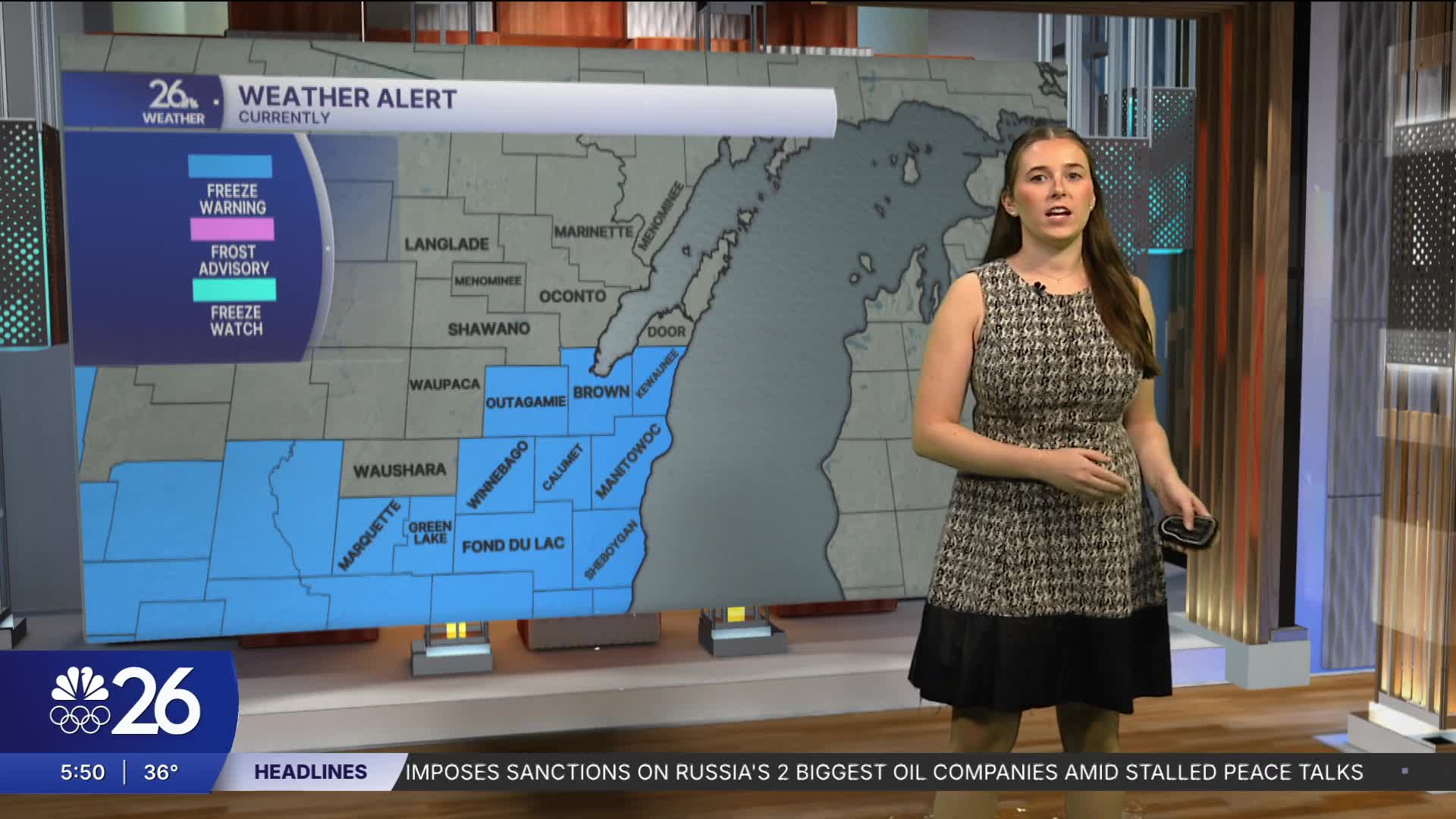 Northeast Wisconsin is starting off this Thursday on a chilly note, with morning temperatures in the mid-30s. Highs will only reach the upper 40s this afternoon as clouds gradually increase across the region. A few light, isolated showers may develop later in the day, but most areas will remain dry. Tonight clouds start to move out, leaving a mostly clear night. Temperatures are expected to drop to around 32 degrees overnight, prompting a freeze warning for early Friday morning. Take precautions to protect any sensitive plants. Bundle up before heading out tomorrow morning — it will be a cool start to the end of the week.