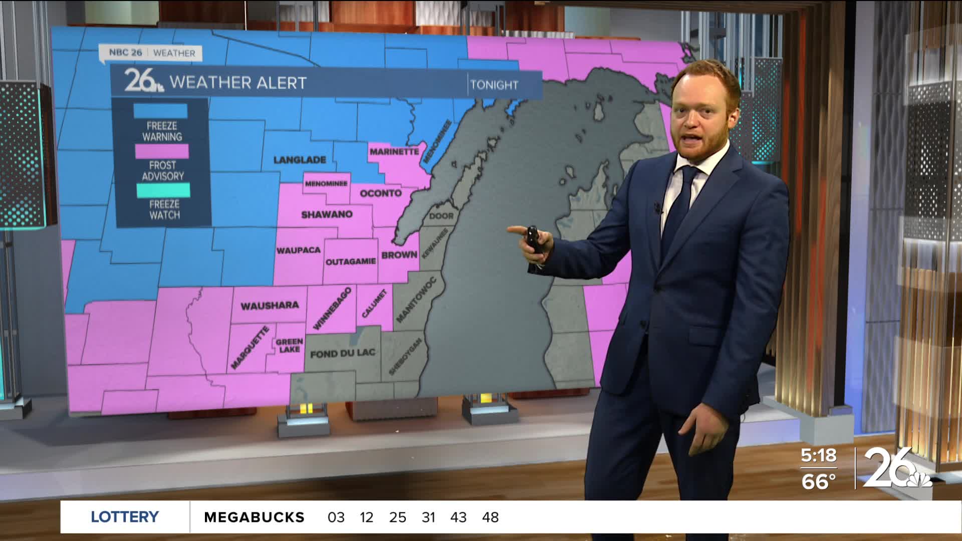 A Frost Advisory will be in effect Tuesday night into Wednesday morning for most counties in northeast Wisconsin as well as a Freeze Warning for some counties further north.