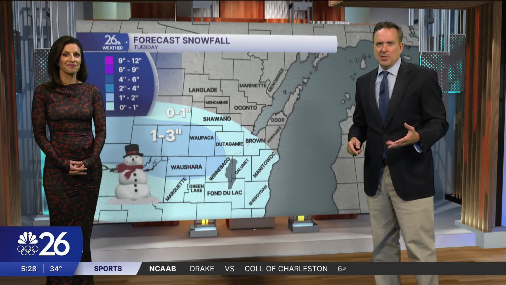 The highest totals will be west of the Fox Valley, with 1-3 inches possible.