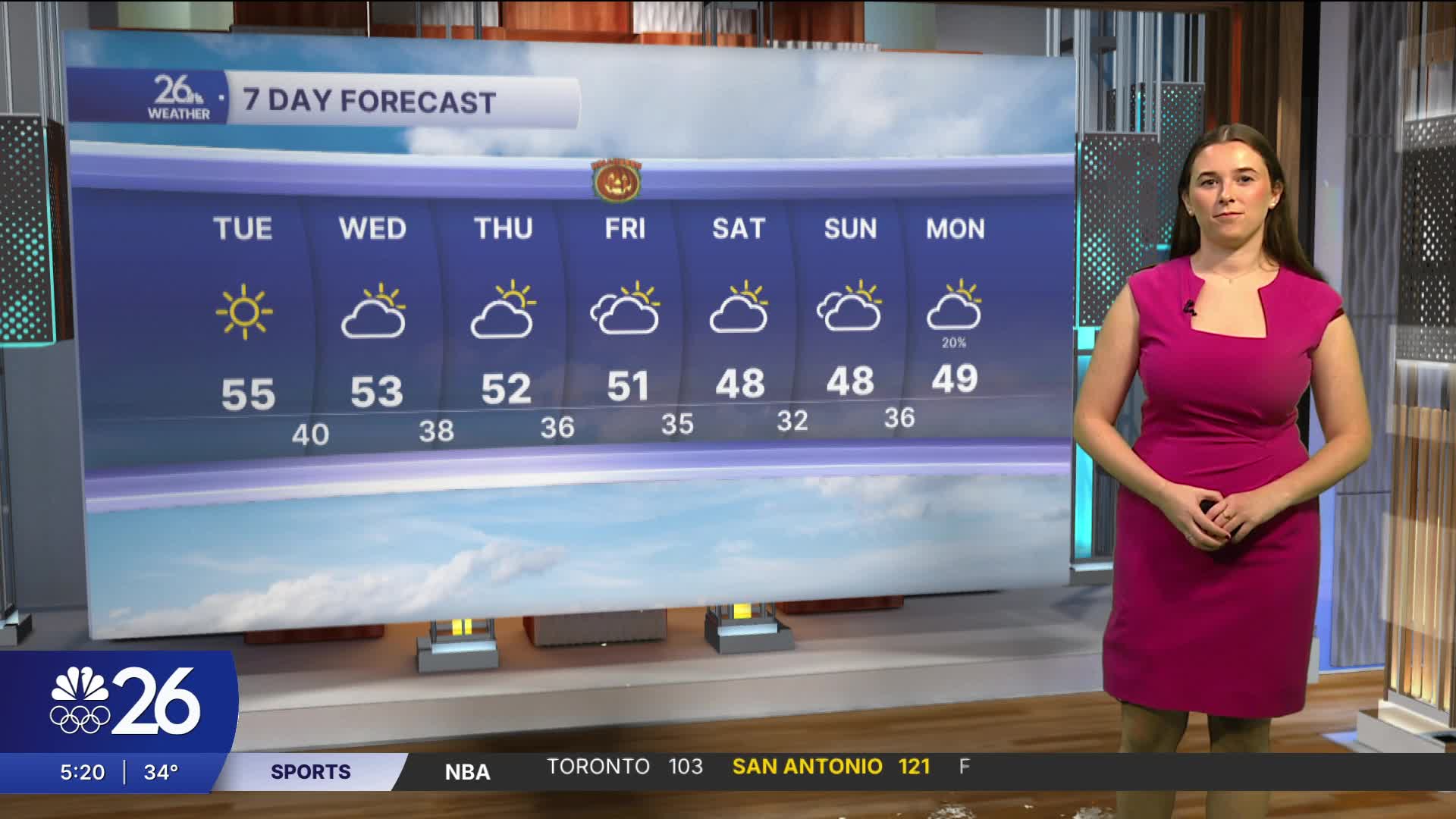 High pressure will remain in control for much of the week, keeping weather fairly quiet. Meanwhile, a strong storm system to our south will stay away, but it will stir up some easterly winds. Those winds will help lock in seasonable temperatures, with highs steady in the 50s before a cooler push arrives heading into the weekend.