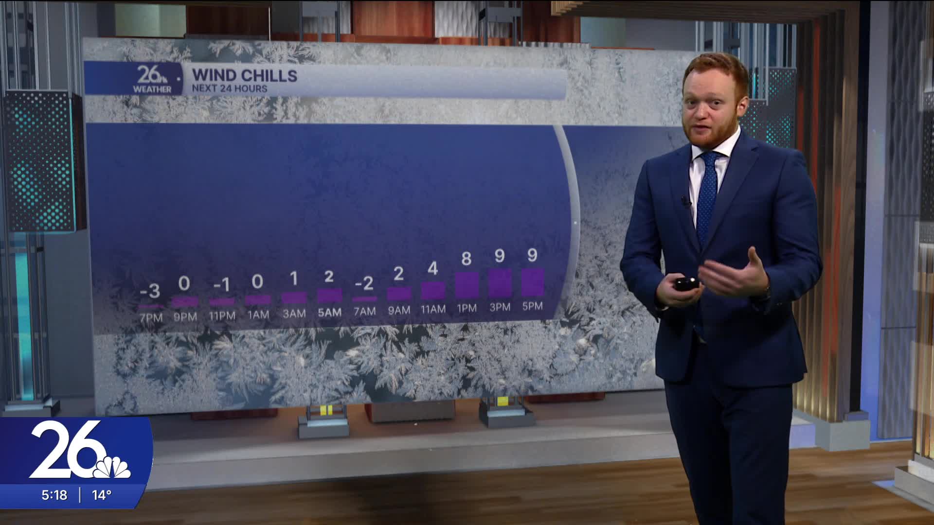 Sunday night into early Monday will bring wind chills to around 0 degrees.