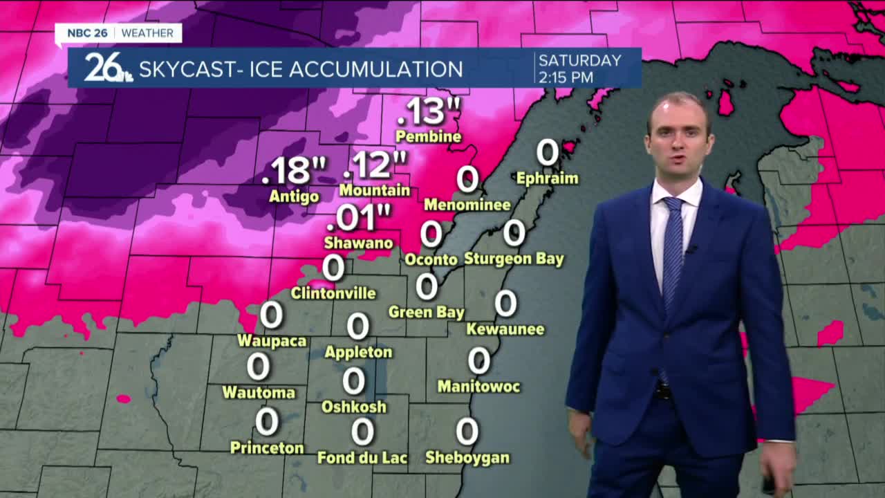 Winter weather advisories are in effect northwest of the Fox Valley with an ice storm warning for Langlade County. Ice accumulations up to three tenths of an inch is possible for Landland county with a tenth to two tenths of an inch elsewhere under winter weather advisories. These headlines are in effect from midnight to noon Sunday.
