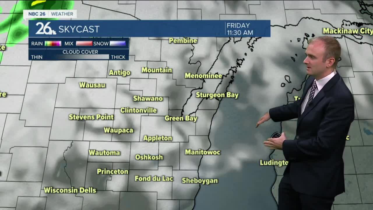 Thursday will feature a mixture of sun and clouds and the potential for some light rain showers, especially around the shoreline. Highs will climb into the mid 60s with a breezy northerly wind around 10-20 mph with gusts near 30 mph.