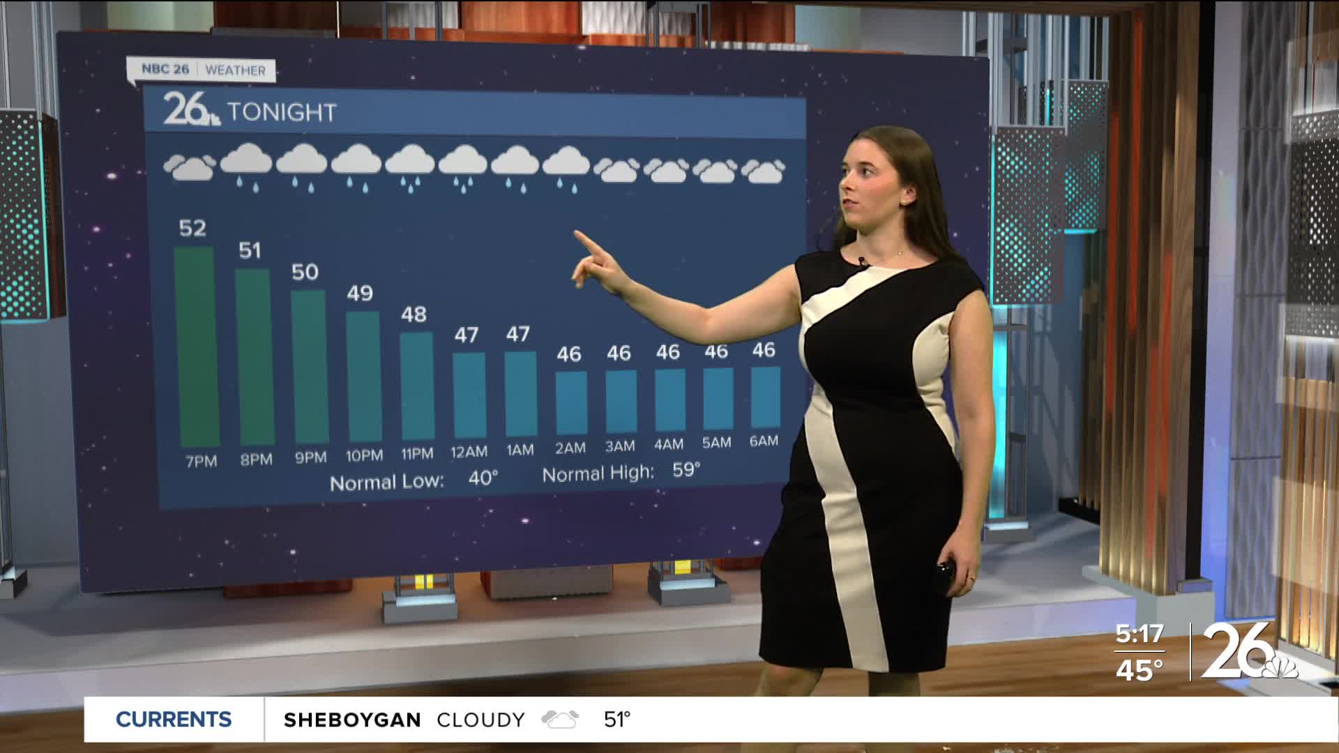 As we head into tonight, temperatures will slowly drop into the upper 40s. Rain chances begin this evening and continue into the early morning Wednesday. Rain chances end in the morning, but clouds will stick around. Temperatures Wednesday will be in the upper 50s.