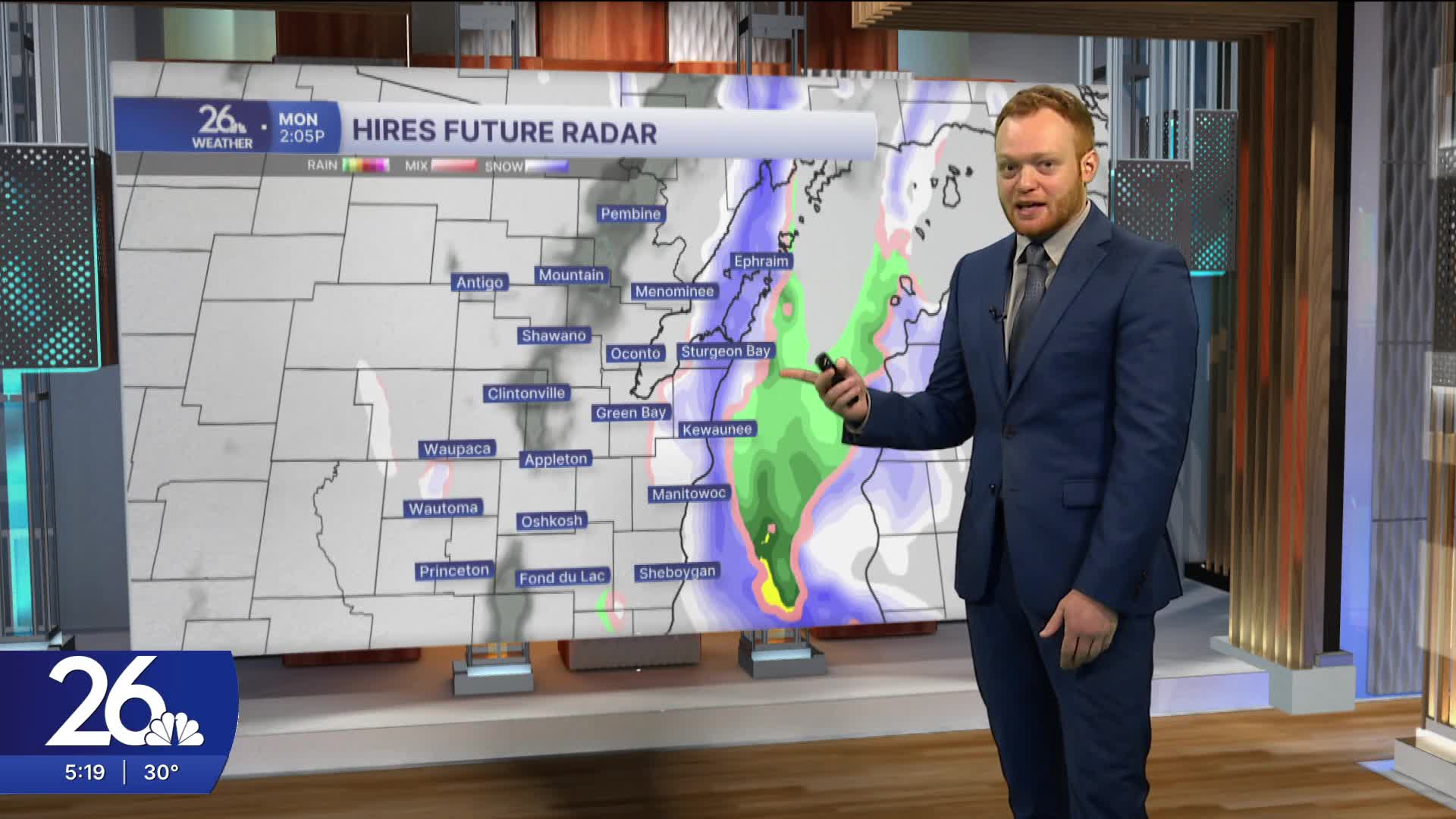 After some weekend snow with accumulation in Door County, overnight Sunday night will be partly cloudy with lows dropping into the low 20s.