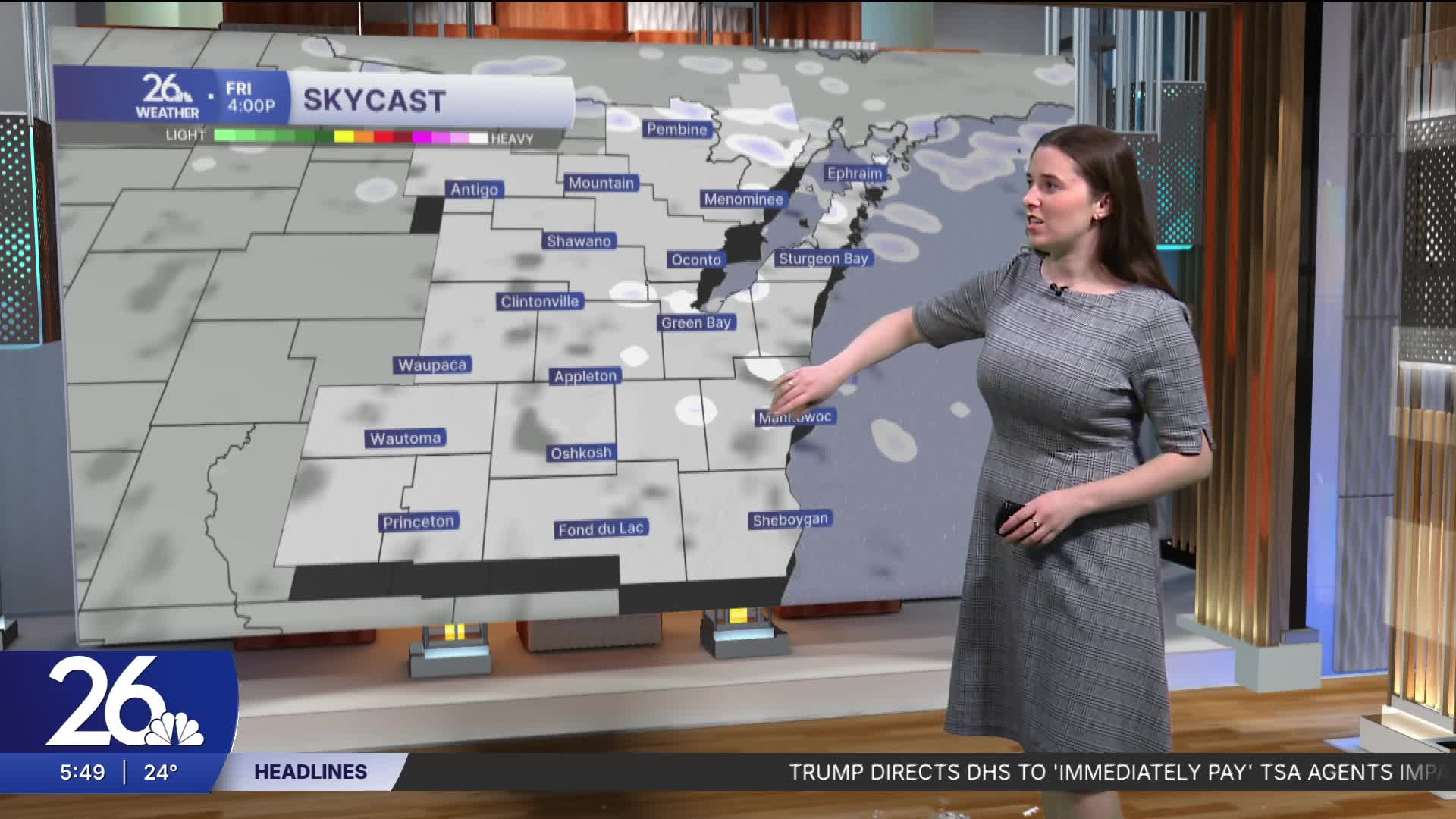 Cooler weather continues today. Northwest winds will keep our temperatures in the 30s. A few snow flurries or showers are possible, and there may be brief bursts of heavier snow this afternoon.