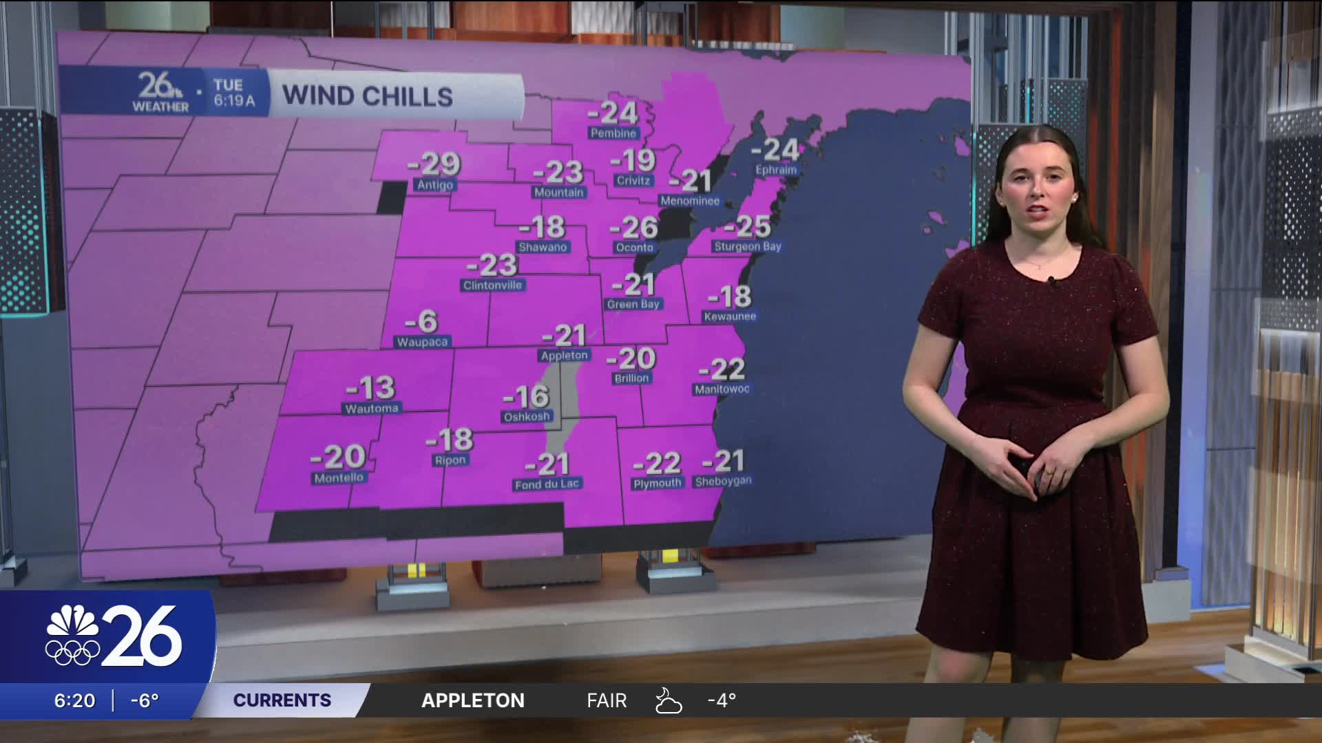 Cold Weather Advisories are in effect until 10 AM today due to cold temperatures and frigid wind chills. Morning temperatures are in the negatives, with wind chills ranging from the negative twenties to negative thirties. High temperatures today will be around 10 degrees, with wind chills making it feel even colder. Most of the day will be mostly sunny, but clouds will increase later.