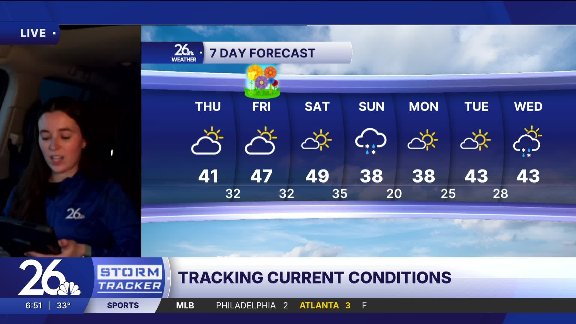 Highs today will reach the low to mid-40s, helping to get some of that snow melting. We’ll see a mix of sun and clouds.