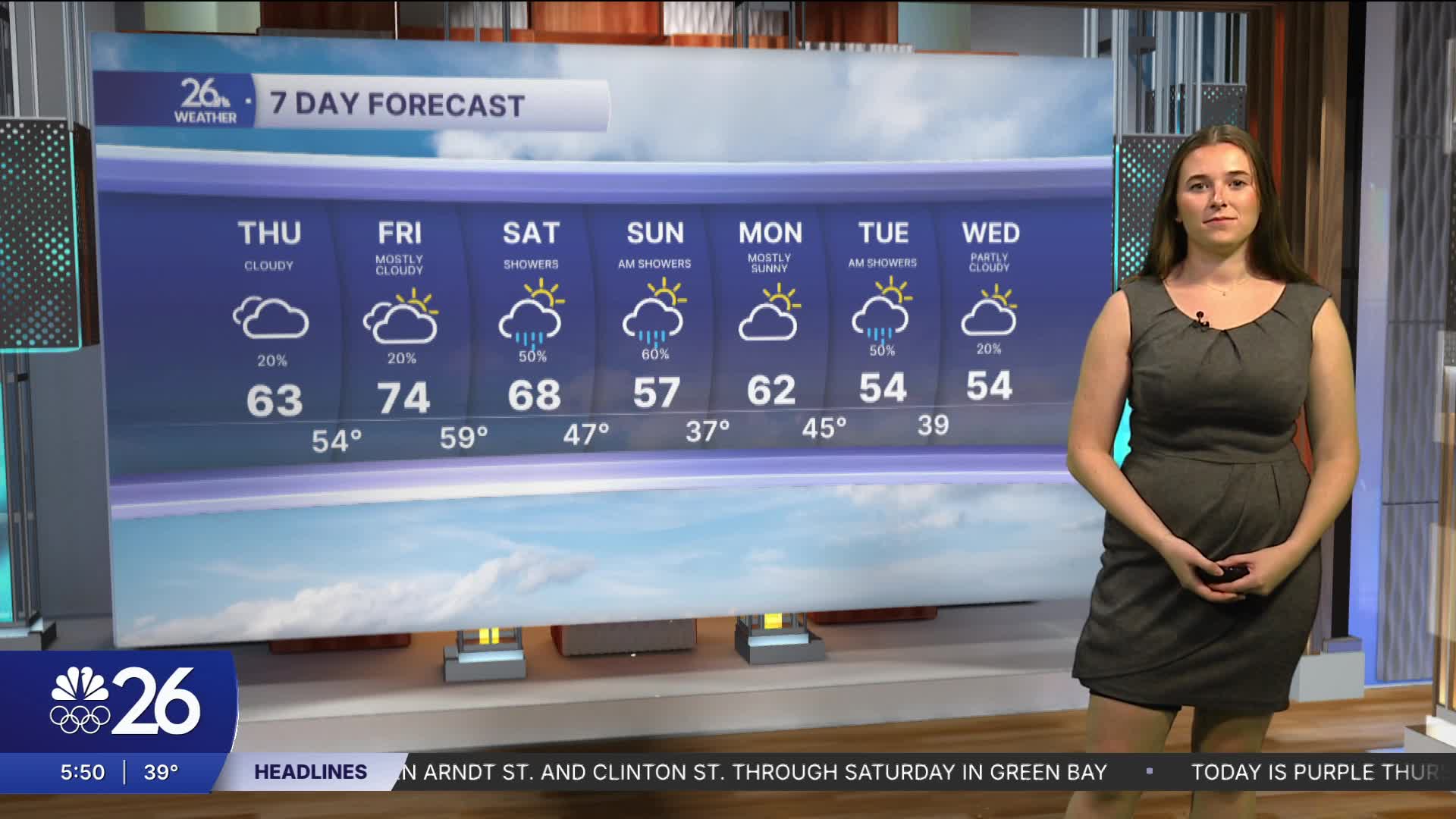 Tomorrow will feel more like early autumn than mid-October, with temperatures rising to an unseasonably warm high near 74 degrees. The day will be mostly cloudy, with limited sunshine and a noticeable breeze out of the south that could make conditions feel even warmer. There is a possibility of wind gusts up to 30 miles per hour. Rain chances return Friday night into Saturday morning