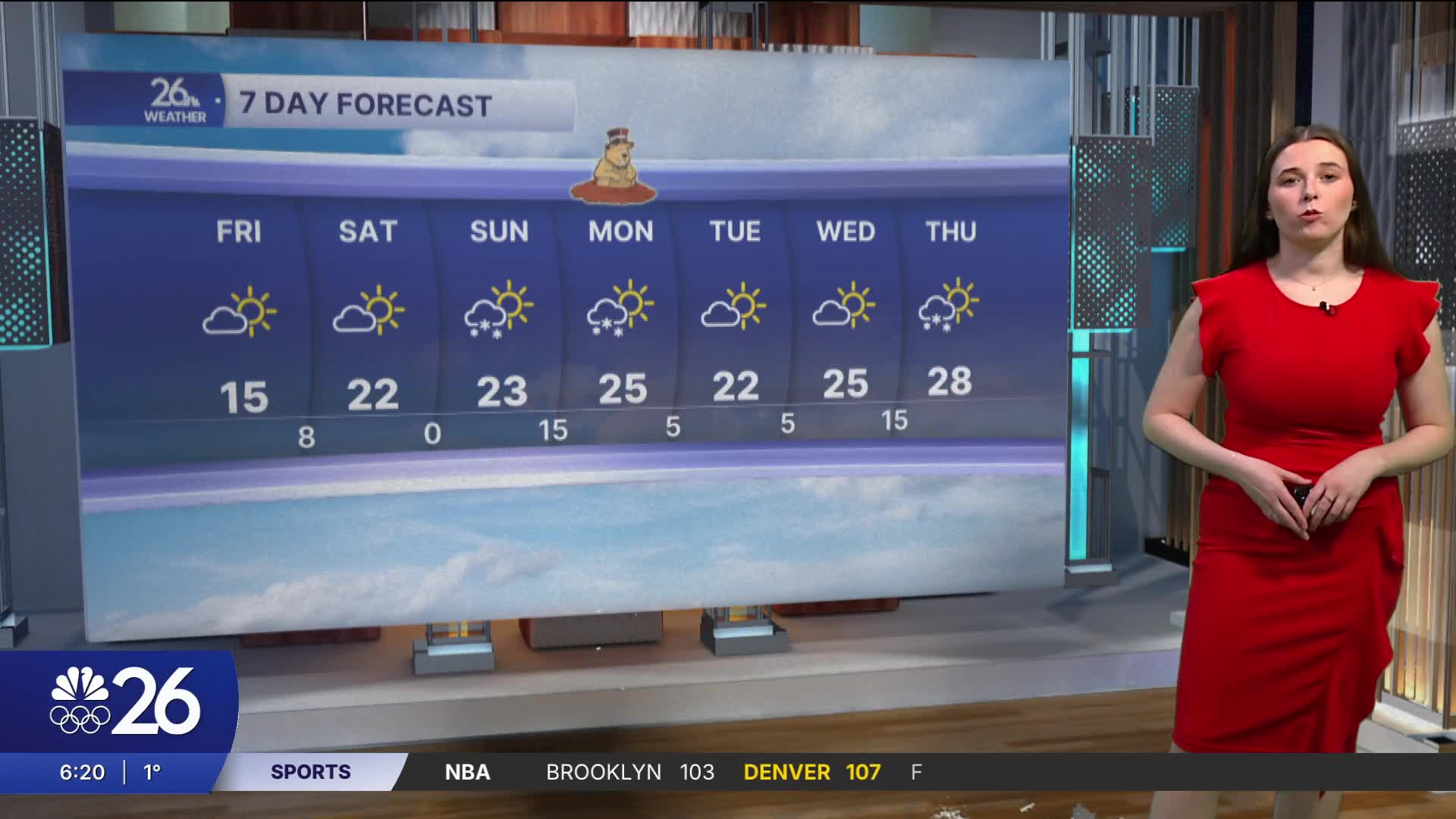 Overnight, skies turn partly cloudy with lows in the upper single digits. Tomorrow brings a return to more seasonable conditions with mostly sunny skies and highs in the low 20s. Looking ahead, widespread light snow is possible from Sunday into Monday, with more seasonable temperatures continuing into next week.