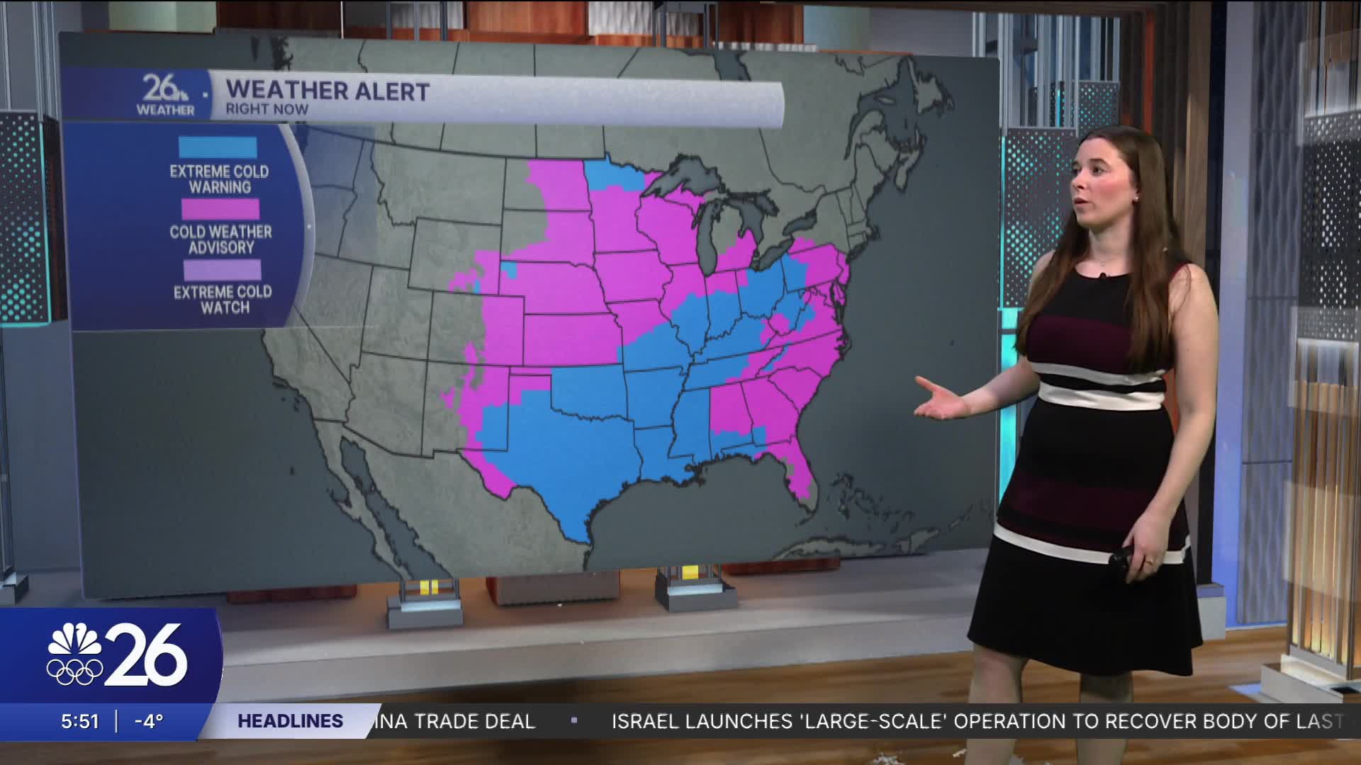 After a frigid weekend, we’ll see some relief as temperatures climb out of the negatives, but cold weather will persist through the week. Cold Weather Advisories are in effect for all counties through noon today. Morning temperatures are in the negatives, with highs reaching the mid to upper single digits this afternoon. Winds will gust near 20 miles per hour at times, bringing wind chills down into the negative teens for much of the day. Skies will be mostly sunny, though clouds will increase later today.
