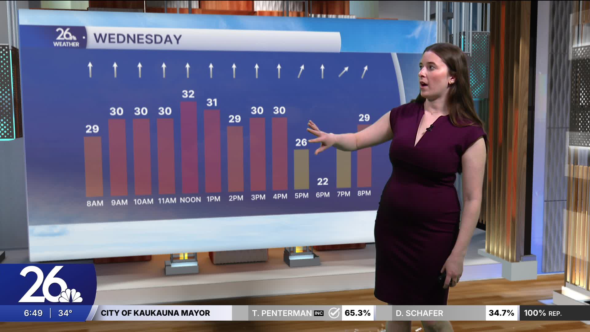 Today will be much warmer than yesterday. Southerly winds will bring temperatures into the 60s, with cooler temperatures along the lakeshore. A rain/snow mix is falling this morning, followed by a break this afternoon. A second round of rain will move through tonight, and winds will be gusty throughout the day.