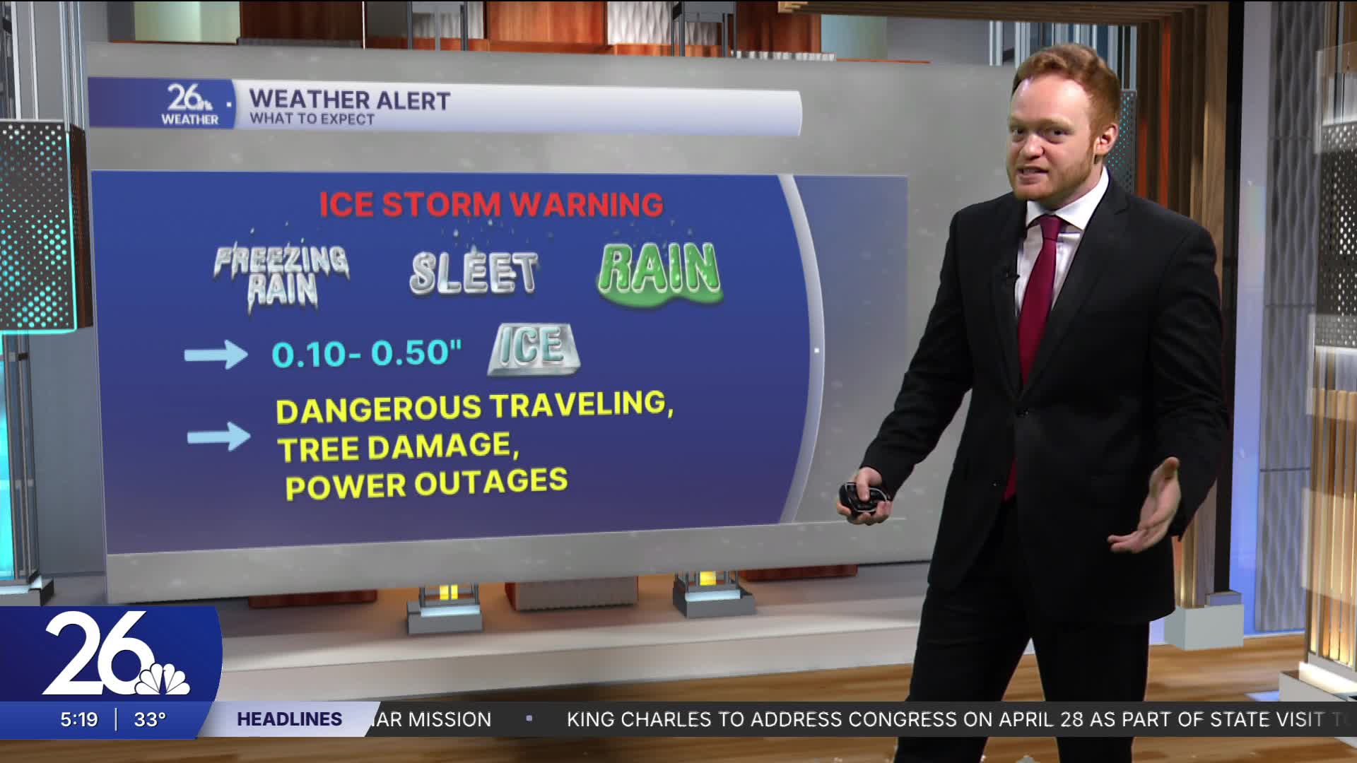 Early Thursday morning we'll get a wintry mix followed by showers and thunderstorms during the day.